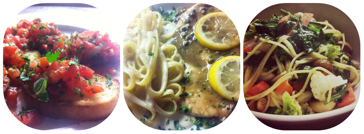 Below are pictures of just a few of their fabulous items available on the menu. From left to right is antipasto, chicken parmesan, ricotta and spinach ravioli, caprese salad and salmon piccata.