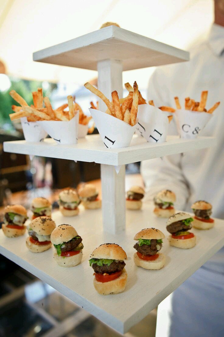 Espresso shots with mini donuts or brownies paired with a milkshake would be great for the guests who don’t drink alcohol and also if you have kids at the event. The pictures of the food stations above are quite elaborate but you can make it work on any budget. You are just serving you food a little differently!