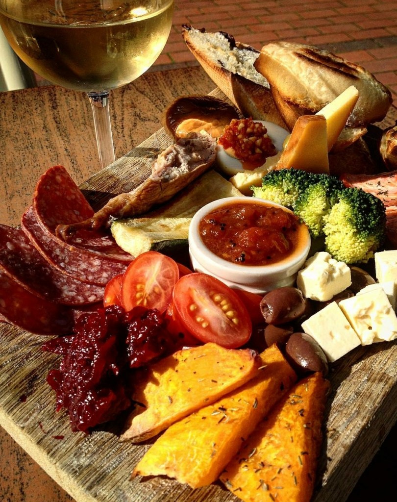 You could end the tasting with chocolates and wine – either sweet wine or a red which goes surprisingly well with dark chocolates. Fruit with bolder cheeses would work with any leftover wines as well.