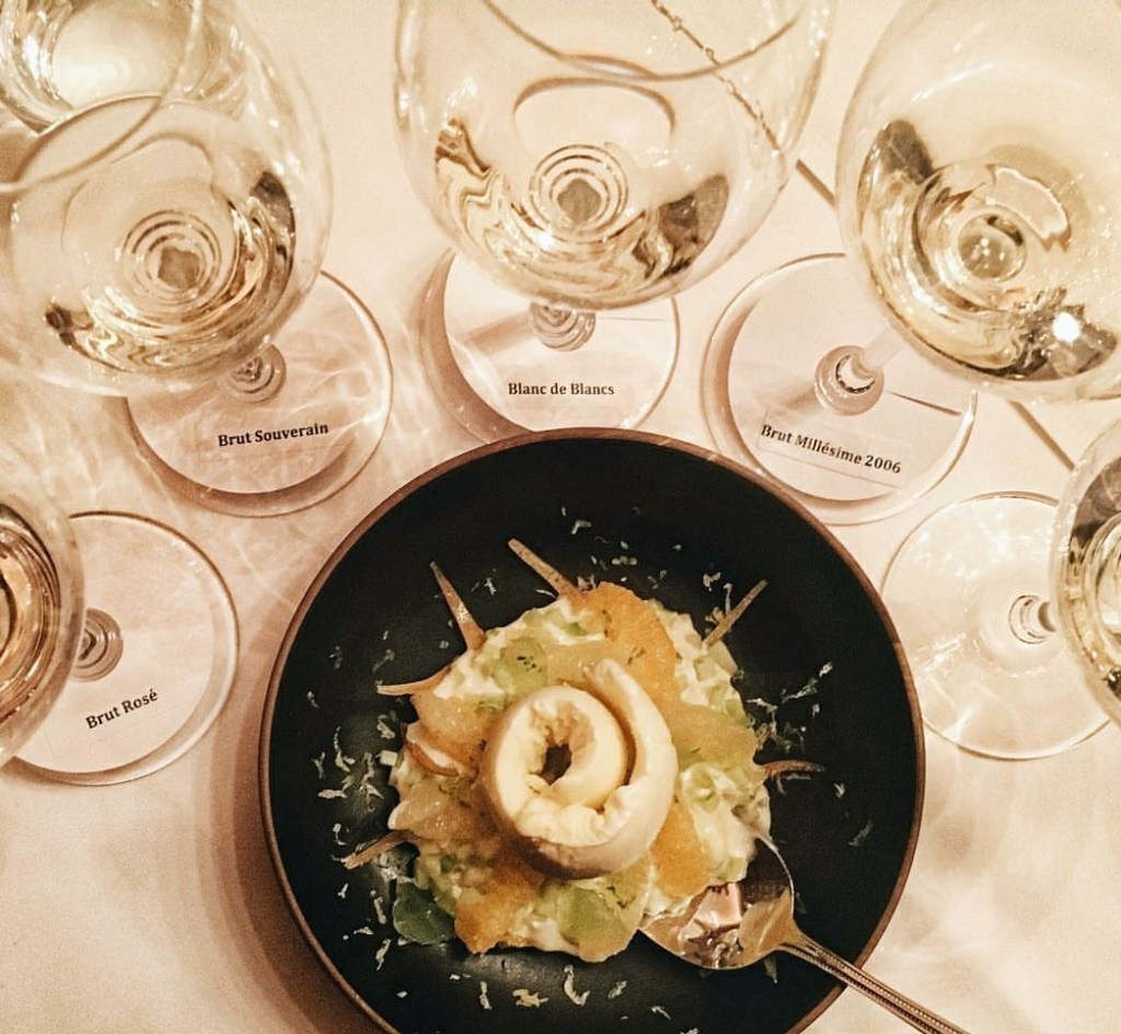 I enjoy hosting wine tastings with a lot of components…so I will either serve champagne cocktails for my guests as they arrive with some appetizers, or have a champagne bar where guests can create their own for an interactive fun atmosphere. I also serve appetizers as the guests arrive and when everyone is present, we start the tasting.